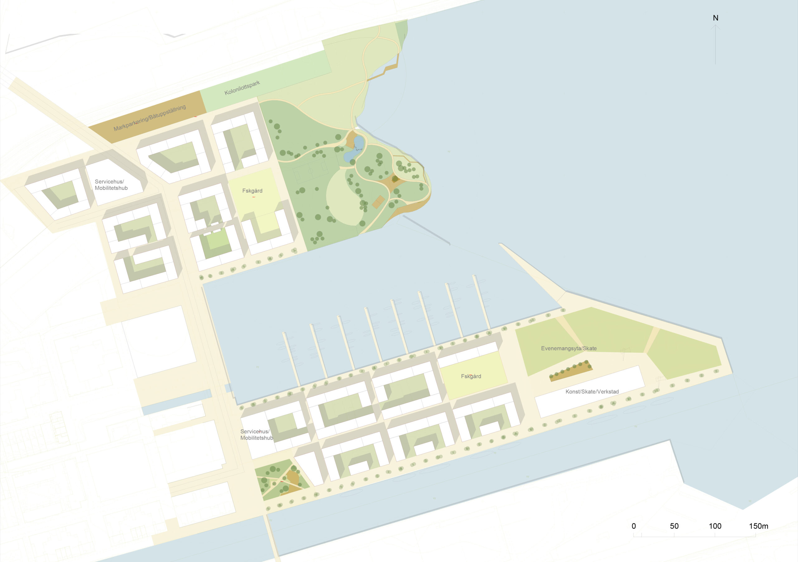 Spacescape fick tillsammans med Skoog Arkitekter uppdraget att ta fram vision, strategier och hållbarhetsindikatorer inför det kommande planprogrammet för den nya stadsdelen. Workshops genomfördes med kommunen för att forma innehållet i linje med kommunens övergripande mål och riktlinjer.