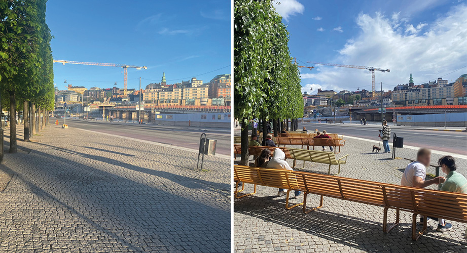 Av 500 svarande i platsintervjuerna ansåg sju av tio att förändringen av gatorna och torgen hade blivit till det bättre. Bland de boende gav fem av tio samma svar. Boende i de slumpmässiga platsintervjuerna var betydligt mer positivt inställda jämfört med de som spontant lämnade in synpunkter i den öppna webbdialogen. Platserna fick genomgående högst betyg avseende trivsamhet och lägst i fråga om barnvänlighet.
