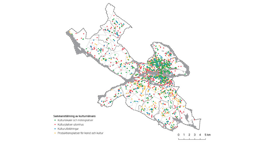Rapporten innehåller kartor och statistik om kulturlokaler, kulturella mötesplatser, kulturutbildningar, produktionsplatser för konst och kultur samt kulturella och kreativa näringar i hela staden och i stadens stadsdelsområden. Kartläggningen ger den hittills mest heltäckande överblicken av Stockholm som kulturstad och utgör ett omfattande kunskapsunderlag som underlättar analys och slutsatser om hur kulturen kan ta plats i stadsutvecklingen. Sammantaget utgör arbetet ytterligare ett steg i arbetet att förtydliga Stockholms stads arbete med kulturdriven stadsutveckling.