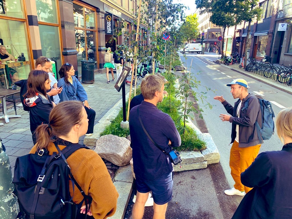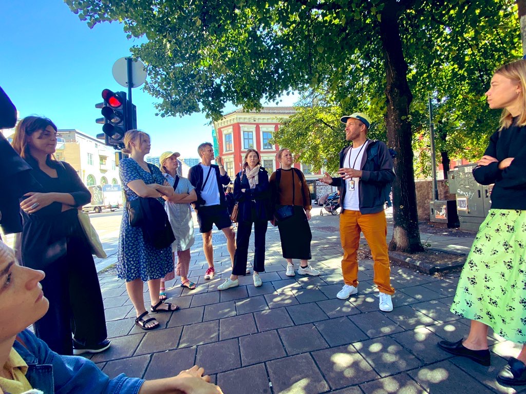 Dag 2 fick vi en inspirerande föreläsning av Alf Waage på Oslo kommune som berättade om projektet Bilfritt byliv. Därefter gick vi och såg flera av gatuprojekten, bl.a. Kirkegata och Grønland – fina förebilder till vårt projekt Framtidsgatan. På eftermiddagen gick vi upp längs vackra Akerselva via Vulkan till Arkitektur- og designhøgskolen där vi fick en föreläsning av professor emeritus och tidigare rektor Karl Otto Ellefsen om Oslos stadsbyggnadshistoria. Dagen slutade i det myllrande Grünerløkka.