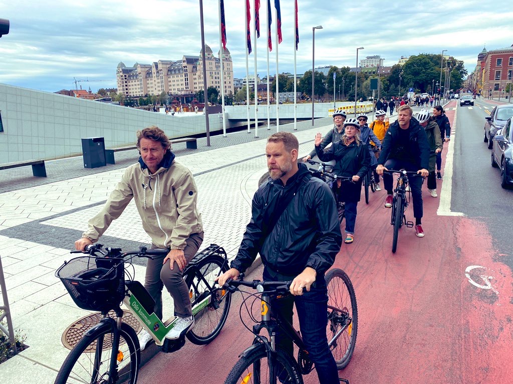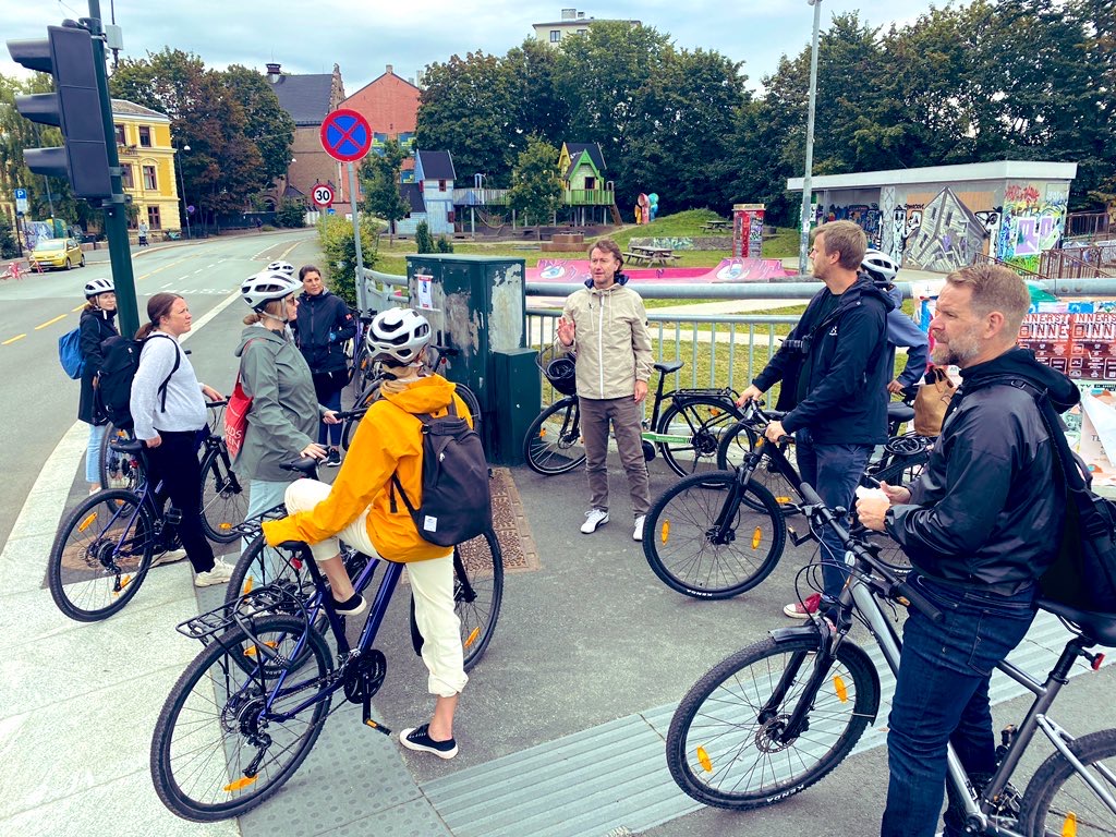 Dag 3 hyrde vi cyklar och fick en fantastisk tur med trafik- och fd cykeldirektör Rune Gjøs. Vi fick se flera imponerande projekt som genomförts efter vår cykelstrategi för Oslo som vi på Spacescape tog fram 2014. Flertalet undersökningar visar att strategin och investeringarna verkligen har haft effekt på cyklandet och på Oslobornas syn på cykelnätet. Så kul! Vi tittade på det nya stadsbyggnadsprojektet Hovinbyn som har flera fina nya stadsrum och bebyggelsetyper. Dagen avslutades med ett besök på arkitektkontoret Snøhetta där diskussioner fördes om framtida samarbeten.